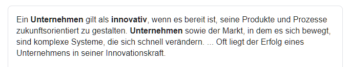 Sucht man auf Google nach der Definition eines Innovativen Unternehmens erhält man solche Dinge: